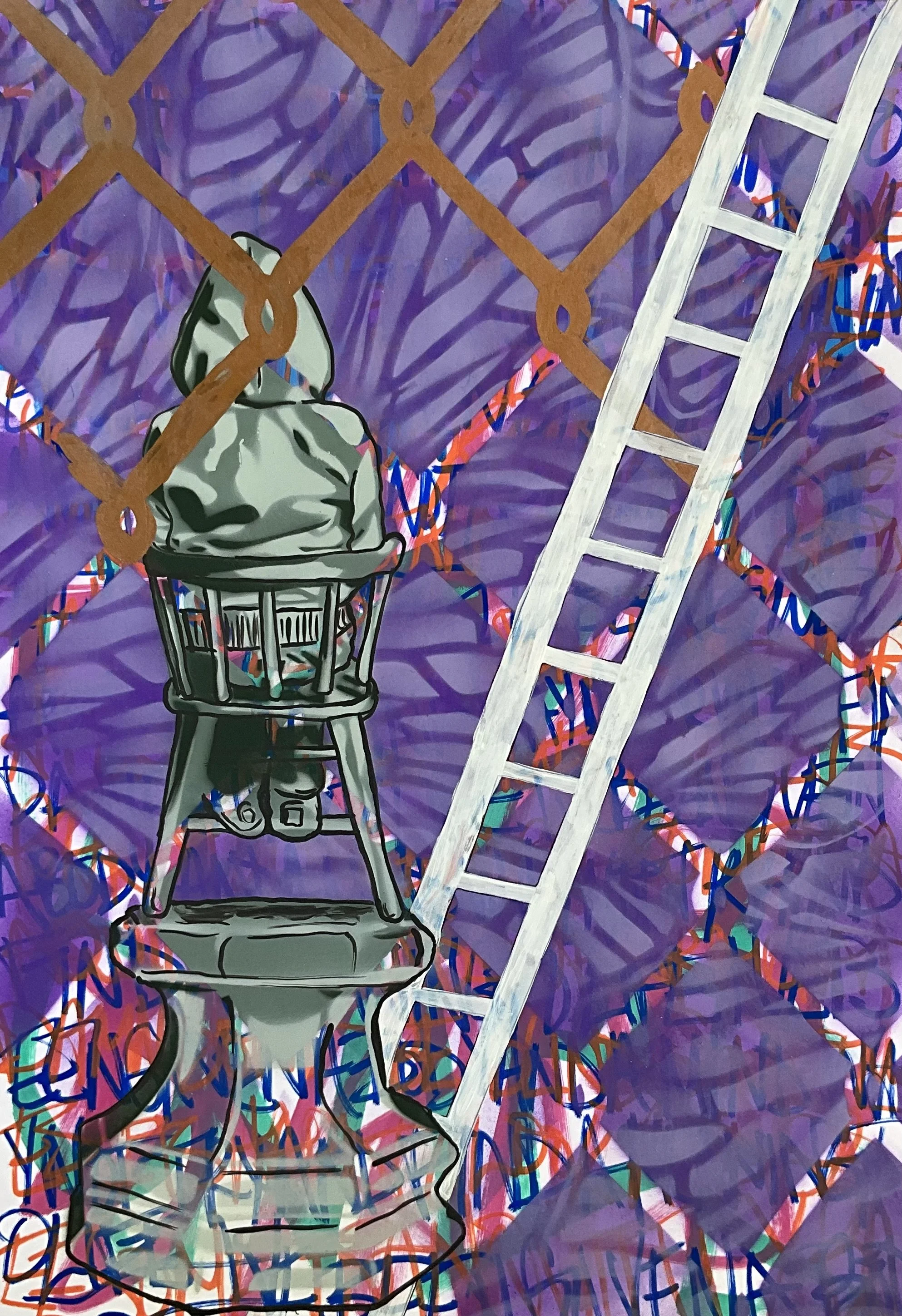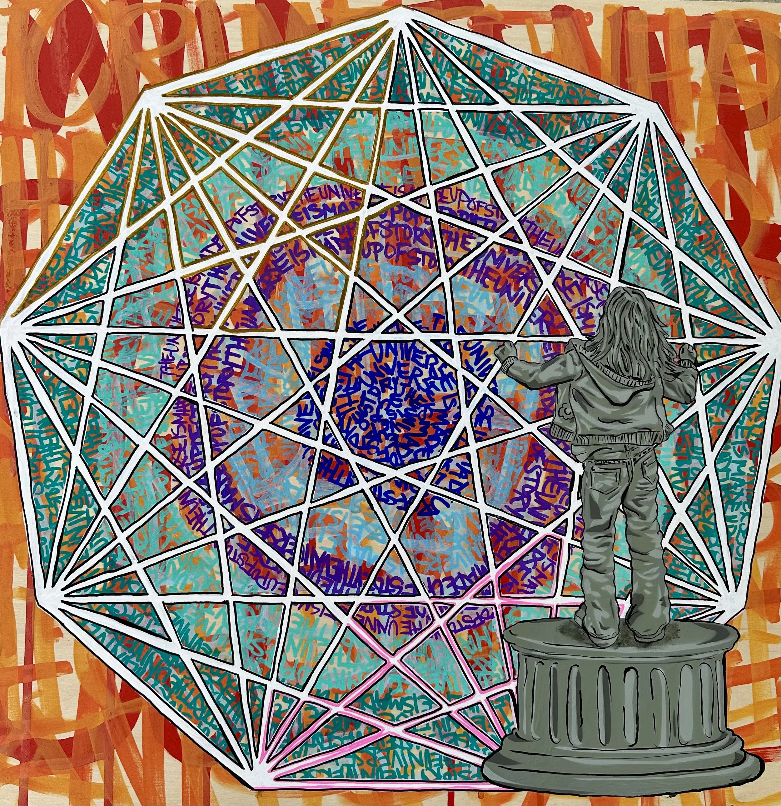 Inspired by the ‘spacewalkers’ that repair the Hubble telescope, Spacewalkers is a series of street art installations and indoor work that explore figures who exist in liminal spaces, spaces both human and otherworldly, spaces of creative possibility and personal peril. These figures tell a different story about the purpose of public art as well as the women and marginalized people who are too often excluded from participation as well as representation.